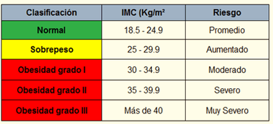 El diagnóstico de obesidad lo realizamos con una medida antropométrica denominada índice de masa corporal (IMC), el cuál se calcula peso/talla2. Según la Organización Mundial de la Salud (OMS), la clasificamos de la siguiente manera: